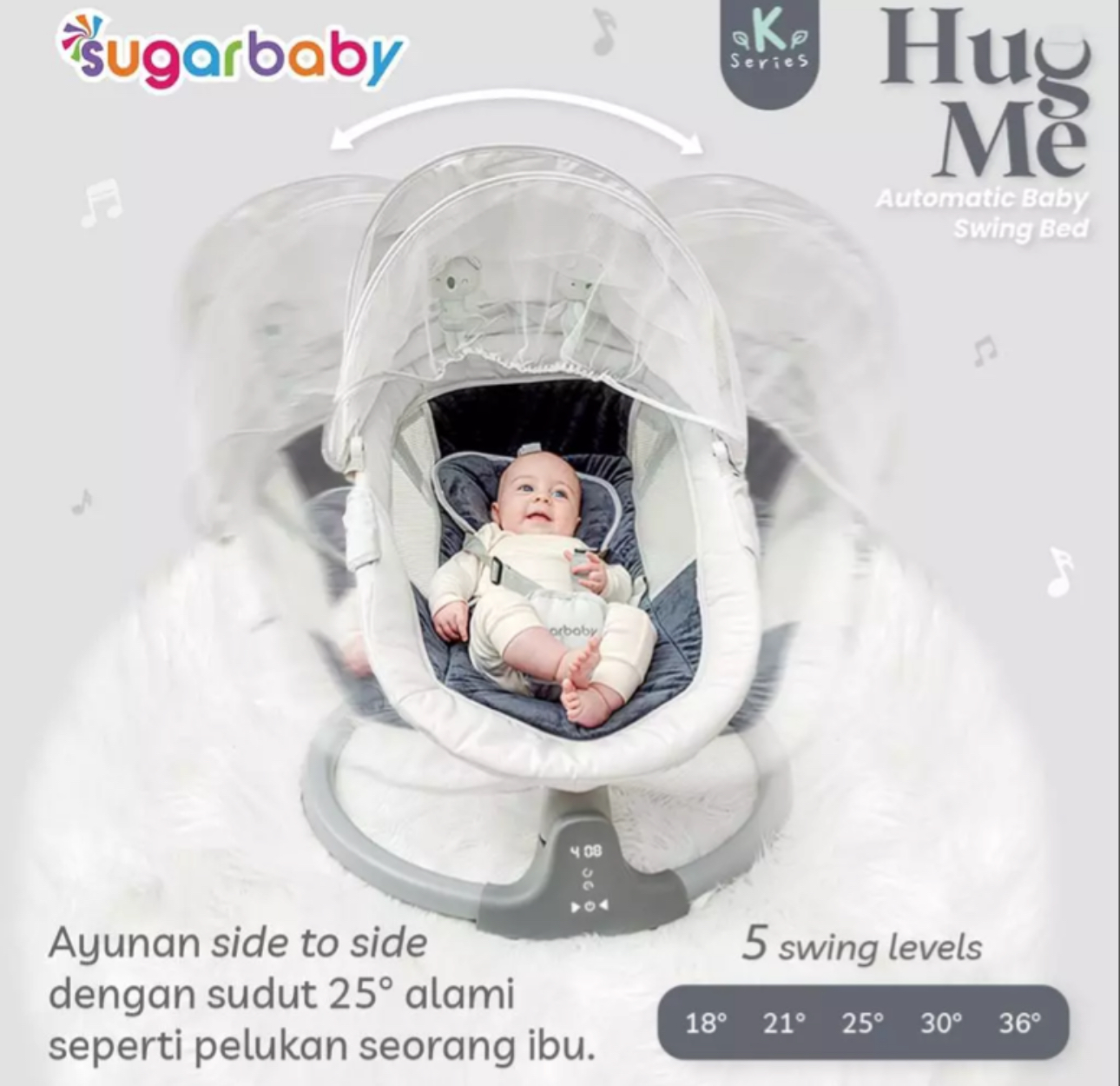 - Ayunan “side to side” dengan sudut 25 ? alami seperti “Pelukan Ibu”